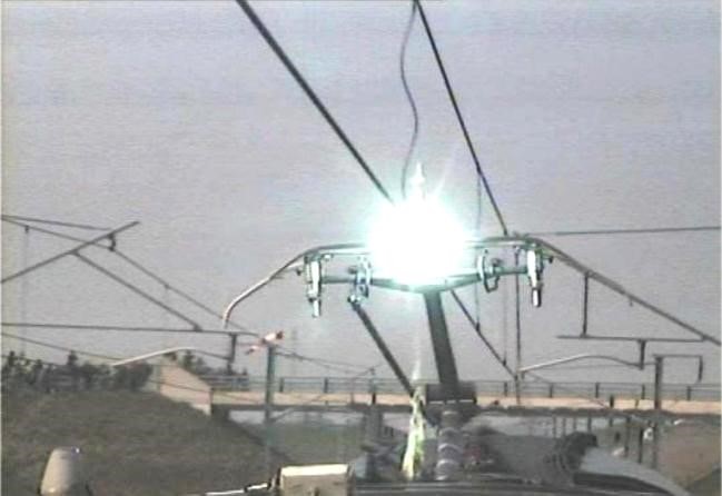 Figure 1. The pantograph-OLE system Figure 2. Arcing between the pantograph and OLE