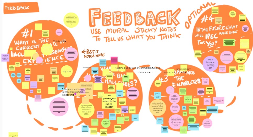 Click here to add post it notes (via the MURAL collaborative tool) with your thoughts on the current state of inclusive passenger experience, the challengers, enablers and what the future IPEC will have done for you.